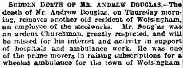 William could clearly turn his hand to a variety of skills, he took up residency at the Butcher’s Shop, Wolsingham where his occupation was recorded as a Steel Moulder & Butcher’s Worker. He passed away in 1922 aged 65 years and is buried in St Mary's and St Stephen's Churchyard, Wolsingham alongside his wife.