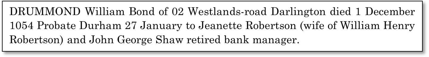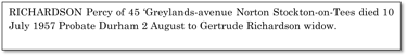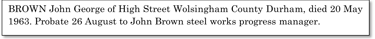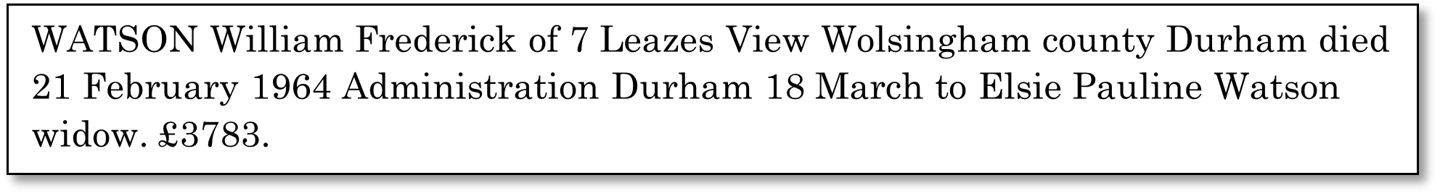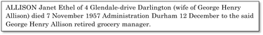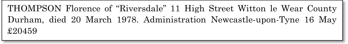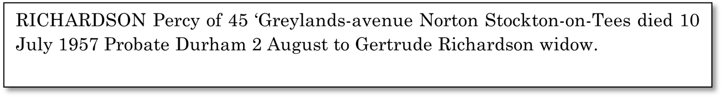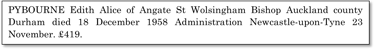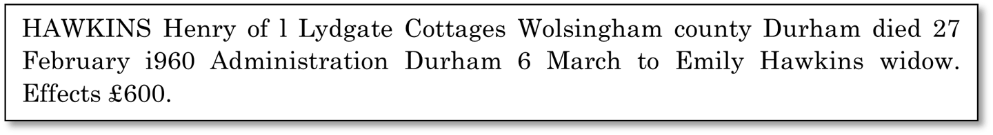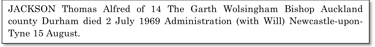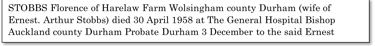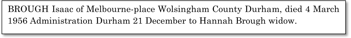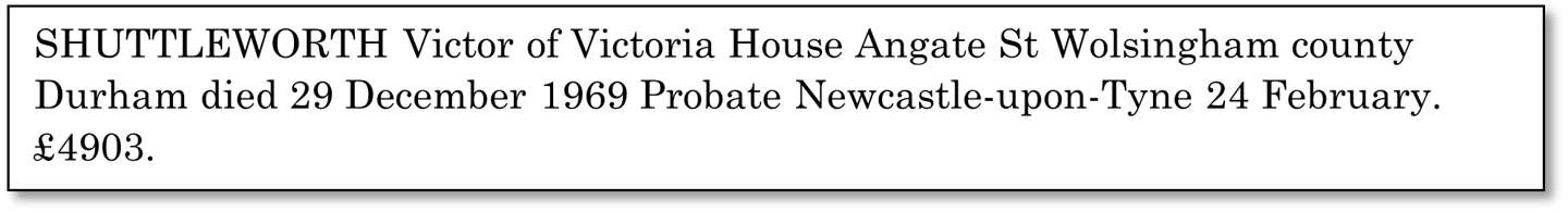 Aubrey’s family spent just a few years living in Wolsingham, moving back to Middlesbrough where Aubrey found employment as a Chemist at a Steelworks. His death was recorded in 1958 aged 76 years.