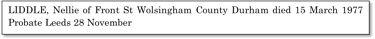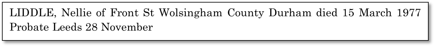 Nellie Airie lived with her widowed grandmother Annie Slee at 13 Lister Terrace, Wolsingham. No further records found for Nellie Airie.