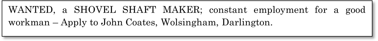 Ann lived in Angate Street, Wolsingham with her parents Christopher and Sarah. Her father Christopher was employed as a Shoemaker and she was one of six children. By the age of 15, Ann was working as a Servant in the home of Painter and Decorator Robert Morgan and his family in High Street, Wolsingham. No further records found for Ann Bell.
