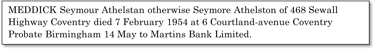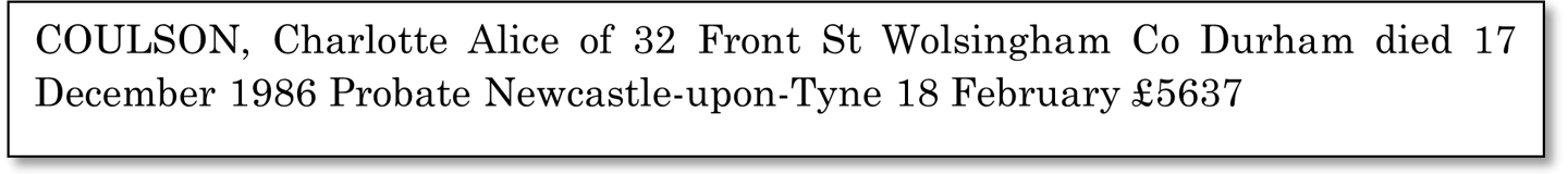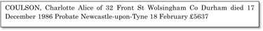 Charlotte Coulson (nee Ward) passed away on December 17th 1986 aged 88 years.