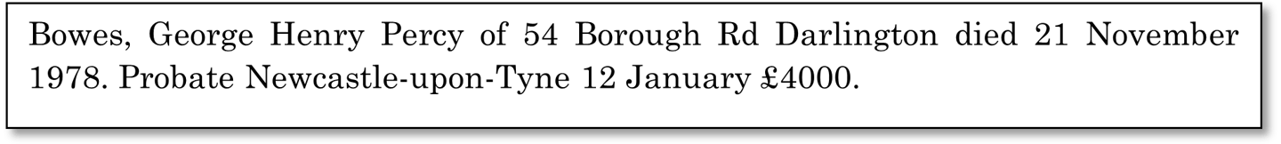 After leaving school, Edward followed his father into work at the Steelworks. Unverified research shows he married Nellie Gowland from Frosterley in 1915, and they had a son in 1919 named Charles. Edward’s death was recorded in 1965 aged 72 years.