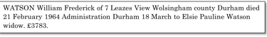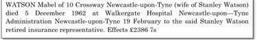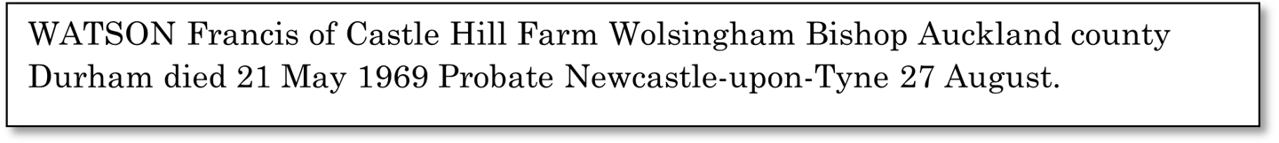 Francis Watson passed away on May 21st 1969 aged 76 years.