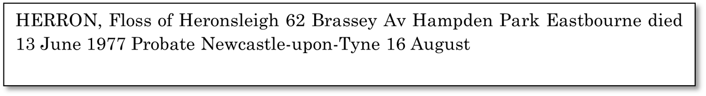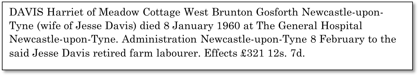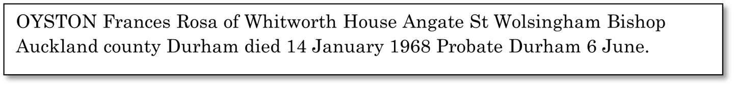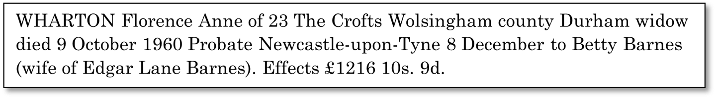 Violet Hodgson (nee Wilkinson) passed away in 1966 aged 80 years.