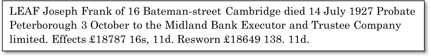 Leonard and Elsie Barker moved to Cheadle in Cheshire, where Leonard was employed as a Grocery Manager. He passed away in 1944 aged 42 years.