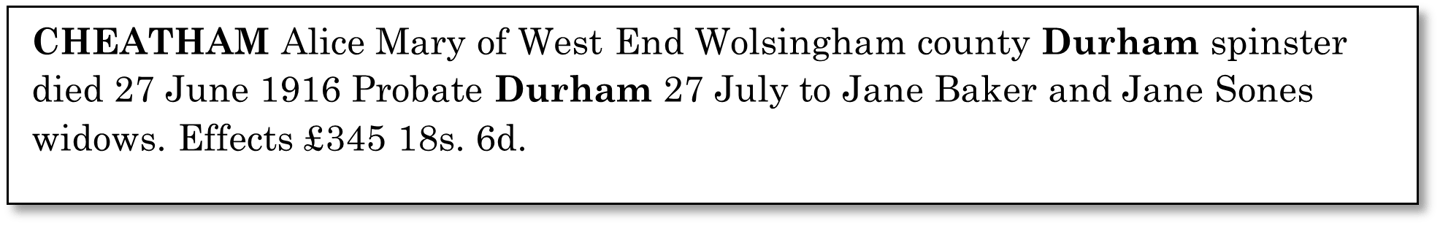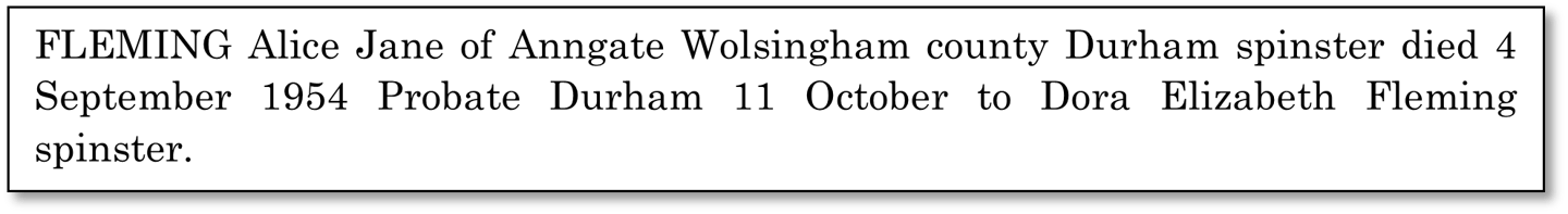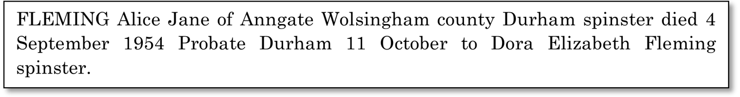 Alice was the daughter of Elizabeth Ann Vasey and was born shortly before her mother married Percy Gardner from Frosterley. They all lived with Alice’s maternal Grandmother Elizabeth Vasey in Meadhope Street, Wolsingham.