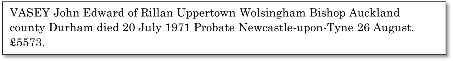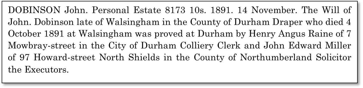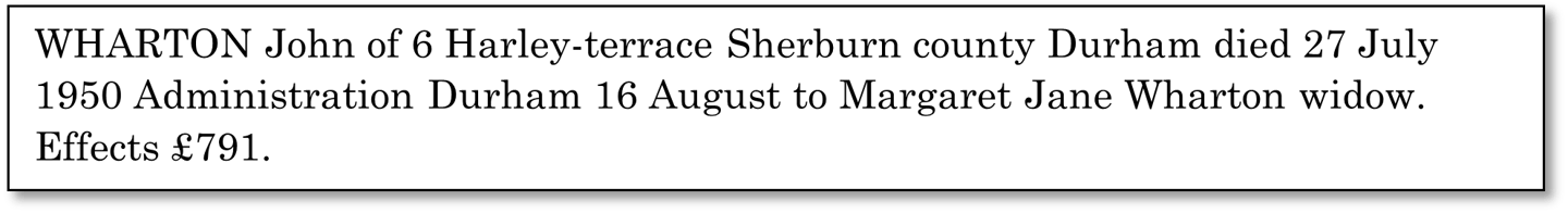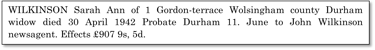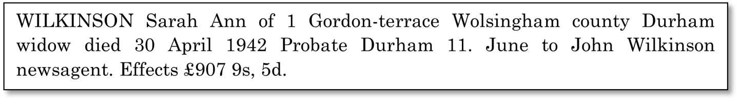 No further records are found for John Wilkinson other than being named in his mother’s will in 1942.