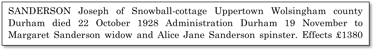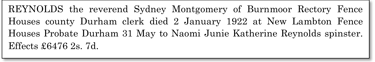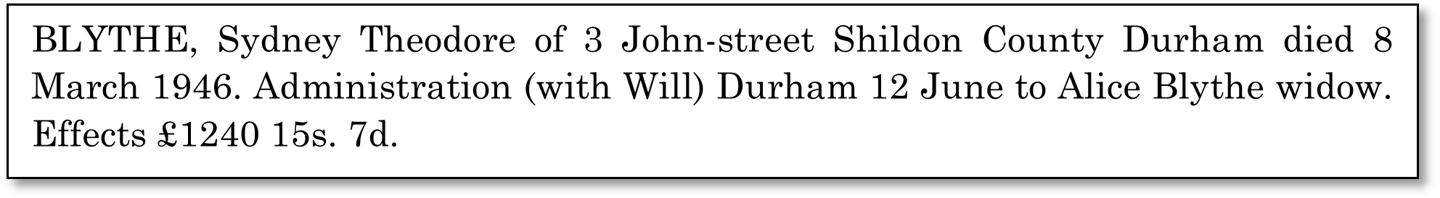 Sydney passed away on March 3rd 1946 aged 64 years, and his wife passed away the following year aged 62 years. They are buried in St Mary's and St Stephen's Churchyard, Wolsingham alongside their son Thomas.