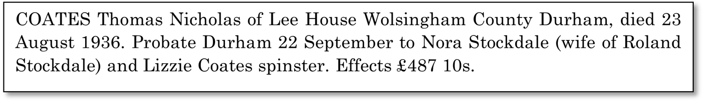 Thomas Bates passed away on October 16th 1921 aged 42 years as a result of a shooting accident, reported in the Newcastle Daily Chronicle on Wednesday 19th October 1921: