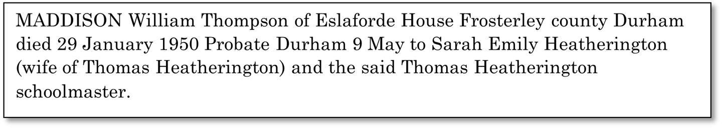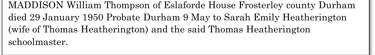 Research for individuals mentioned in the book: Through The Eyes of a School, A History of the Wolsingham National School, but research not included in the book.