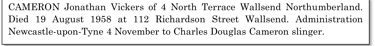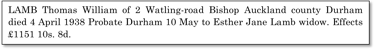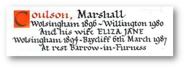 William married Elsie Harrison from Durham in 1934. He passed away on February 21st 1964 aged 78 years and is buried alongside his wife in St Mary's and St Stephen's Churchyard, Wolsingham.