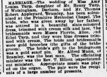 Harriet Bloomfield was born in Wolsingham on November 26th 1884, but by the age of 6 she was living in Landsdown Street, Darlington with her parents Philip, a Steel Finisher, and Margaret. After leaving school, she found employment as a General Domestic Servant at the home of Hannah Wood in Stanhope Road, Darlington.