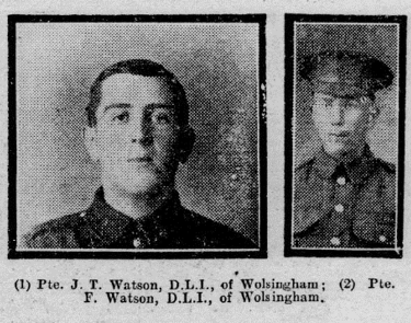 Frank Watson lived at Redgate Farm, Wolsingham with his father John Walton, a Farmer and Auctioneer, and mother Ruth Kipling. He had six siblings named John Sanderson, Lizzie Graham, William Walton, Harrison, Victor and Anthony.