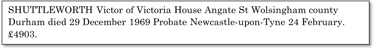 Victor passed away on December 7th 1972 aged 75 years, just six months after his wife.