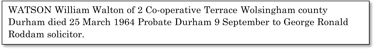 William is the brother of pupil Joseph Thomas Watson. William lived with his family at the Black Bull, Market Place, Wolsingham, where his father Joseph was the Innkeeper.