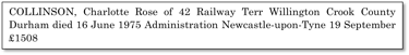 A matching death record exists in County Durham for James Wilkinson, born 1868, who passed away in November 1943 aged 75 years.
