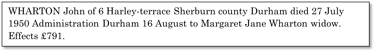 John Wharton was born on January 15th 1890 in Wolsingham to Steelworker John Wharton and his wife Jane. The family, which included a sister named Edith, lived at Croft Cottage in the High Street, Wolsingham. John was to follow a successful career in teaching, eventually becoming a School Master in Sherburn, Durham. He passed away in 1950 aged 60 years.