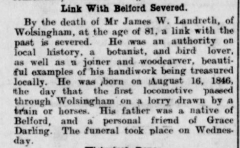 After serving as Clerk in Holy Orders at Hebburn, Reverend Whitelock took up his role in Wolsingham. Much-travelled, he eventually moved to Meldon, Northumberland, and it was there that he passed away on January 6th 1913, aged 68 years.