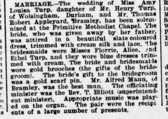 The marriage of Leonard Barker and Elsie Elwick, Scarborough, December 1932. [Ian Noble originally shared this on Ancestry.co.uk]